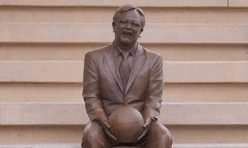 Earlier today, on what would have been Mayor Lee’s 70th birthday, Welts joined members of Ed Lee’s immediate family, San Francisco Mayor London Breed and Speaker of the House Nancy Pelosi to unveil the sculpture in Thrive City.The full figure bronze sculpture depicts Mayor Lee smiling and holding a basketball, sitting in Thrive City’s Gatehouse steps, facing Chase Center, the world-class facility he helped make a reality. The piece was sculpted in wet clay by artists Jonah Hendrickson and Deborah Samia at their studio in Alameda, and cast in bronze at the Art Works Foundry in Berkeley.